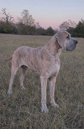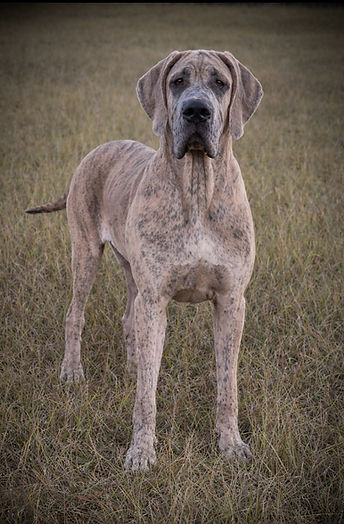 This is our gorgeous Hattie, she is 100% European blue brindle. She stands 35" tall and weighs 145 pounds. She is a very sweet girl with a ton of personality.... She's a talker! She is real hoot and happy all the time, she's truly a sweetheart